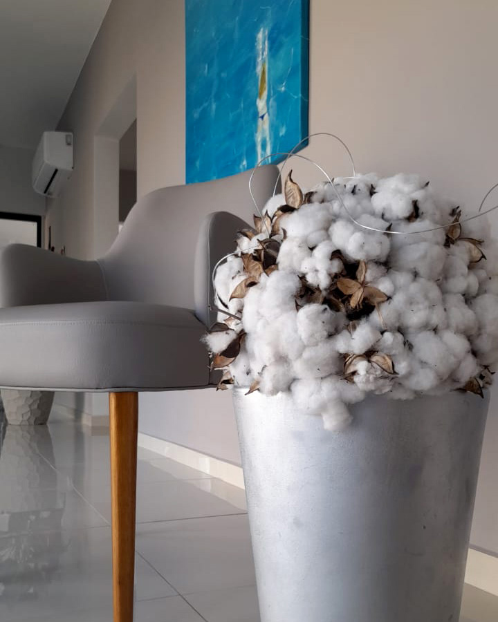 Por último, los exquisitos arreglos de algodón de Ana Clara Zlogar de Buenos Aires, que combinan la pureza y la suavidad de este material natural con un diseño contemporáneo, ofrecen un toque de elegancia y autenticidad. Estos arreglos no solo celebran la riqueza de nuestra tierra, sino que también conectan a nuestros huéspedes con las raíces culturales de la región.